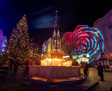 Rund um den Unteren Stadtplatz lassen spektakuläre Projektionen die Hausfassaden glänzen und im Stadtpark warten hochkarätige Musiker:innen und ein zauberhafter Lichterhimmel, unter dem man die täglichen Konzerte genießen kann. Zudem finden an allen Tagen jeweils um 17 und 20 Uhr am Unteren Stadtplatz Feuershows mitsamt Funkenregen und akrobatischer Eleganz statt. Zwischen den beiden Auftritten schlägt die Stunde des Nachtwächters. Auf seiner besonderen Runde durch die Altstadt erzählt er jeweils um 18 Uhr Geschichten und Geheimnisse und lädt zu einem Spaziergang zwischen Licht und Schatten, Vergangenheit und Gegenwart ein. Anmeldung erforderlich: booking@kufstein.com