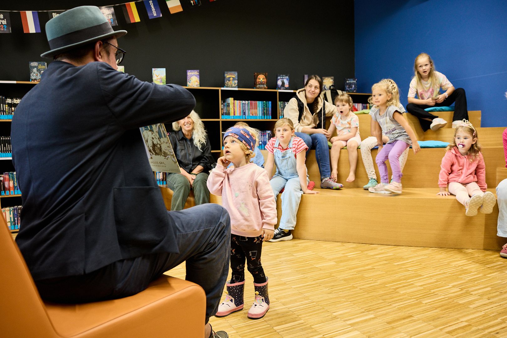 SPRACHSALZ MINI bot Kindern von 3-10 Jahren heuer Lesungen von Marco Kerler und Franz Hohler. Am Samstag fand die beliebte und sehr gut besuchte Bastelwerkstatt mit Christian Yeti Beirer statt: Vom Strichmännchen zum Comic, von ersten Schreibversuchen zu einer kleinen Geschichte und mit Nadel, Faden und Klammer zum eigenen kleinen Buch.