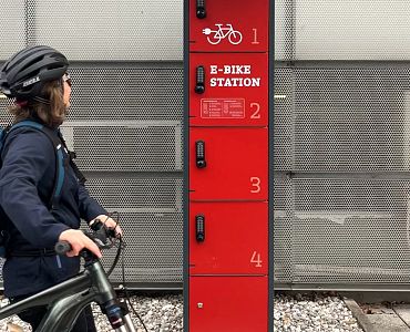 Each charging station has four lockable lockers, each equipped with two sockets. In addition to charging e-bike batteries, mobile devices such as smartphones can also be charged at the same time. At the same time, the lockers provide space for the secure storage of personal items such as helmets or rucksacks.